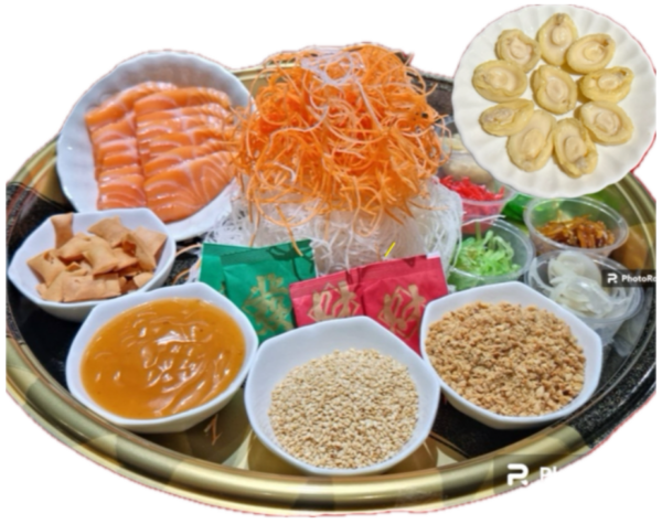 A classic rendition which retains the essence of a full flavored festive salad, paired with smoked salmon OR baby abalone with SPECIAL home-made sauce.
